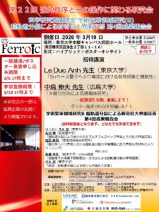 共同開催: 応用物理学会「第22回強的秩序とその操作に関わる研究会 」